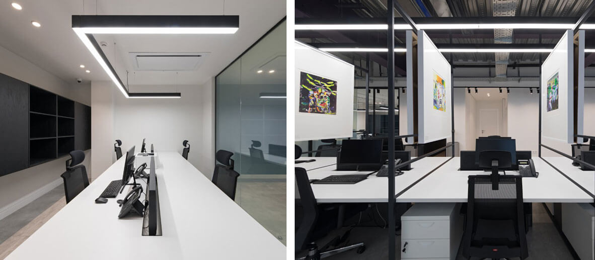 عرضه محصولات روشنایی دفتر اداری سبادگردان از افتخارات ما می باشد. نکته ویژه و قابل توجه در این پروژه افزایش کارایی فضا با انتخاب نورهای مناسب است. نور خطی Sira P 6090 نوری استاندارد، یکنواخت و پراکنده در فضاهای کاری ایجاد می کند و عامل اصلی عدم ایجاد خستگی در کارکنان می باشد. علاوه بر این در فضاهای دیگر از چراغ های دیگری فنوس مانند چراغ آرو استفاده شده است که از حداکثر انعطاف پذیری برخوردار است.