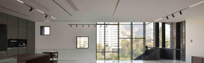 یک خانه مسکونی مدرن، لوکس و چند طبقه‌ای که بیشتر با چراغ‌های مدرن و پیشرفته از محصولات ما تجهیز شده است. خانواده چراغ‌های بدون خیرگی دارکلانس، در اتاق نشیمن، فضایی آرام و مناسب برای استراحت و تماشای فیلم ایجاد می‌کنند. همچنین، پروفیل‌های کراب به همراه چراغ‌های سیرا 1616 و فلکا مینی به شیوه‌ای مدرن و جذاب در این خانه نصب شده‌اند.